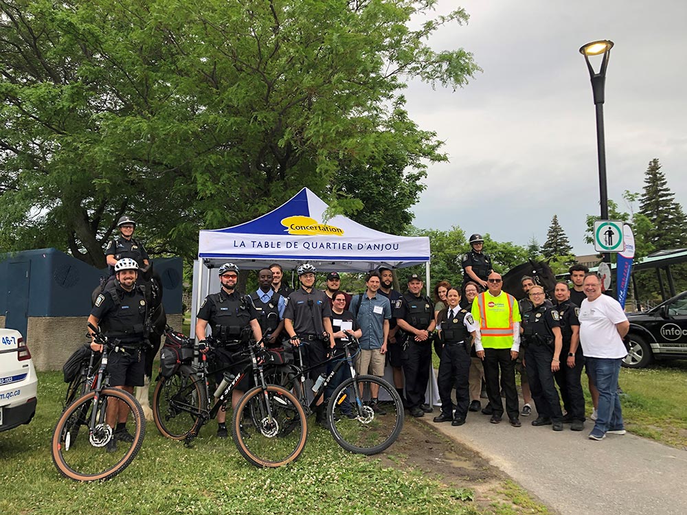 La rencontre a été fructueuse et a été également pour ICM l’occasion de remettre nos nouvelles affiches aux différents organismes présents. La rencontre d’une heure et demie au poste était suivie par un déploiement sur le terrain avec la tenue de deux séances de prévention et sensibilisation dans deux parcs importants d’Anjou, soit le parc Lucie-Bruneau et le parc Goncourt. Les deux séances qui se tenaient entre 15h et 19h ce jour-là se sont biens déroulés et les organismes participants et ICM en profitaient pour distribuer des prospectus d’information et des objets promos aux citoyens présents. Pour ICM l’initiative a été bénéfique et un bel exemple de concertation et nous tenons à remercier la direction du PDQ 46 d’y avoir invité notre organisation.