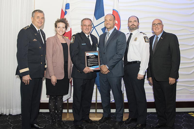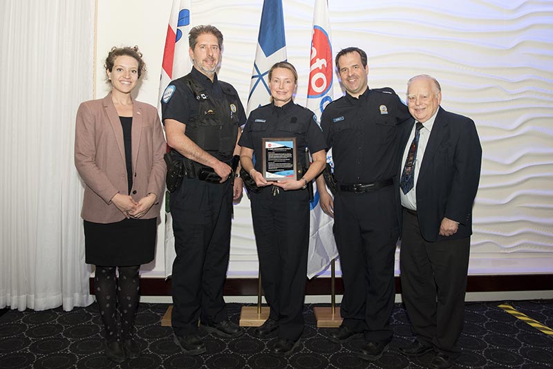 In the photo, from left to right, Rosannie Filato, SPVM agents Luc Marticotte, Lina Borremans and Gabriel Couture, and Alex Harper, founder of ICM.