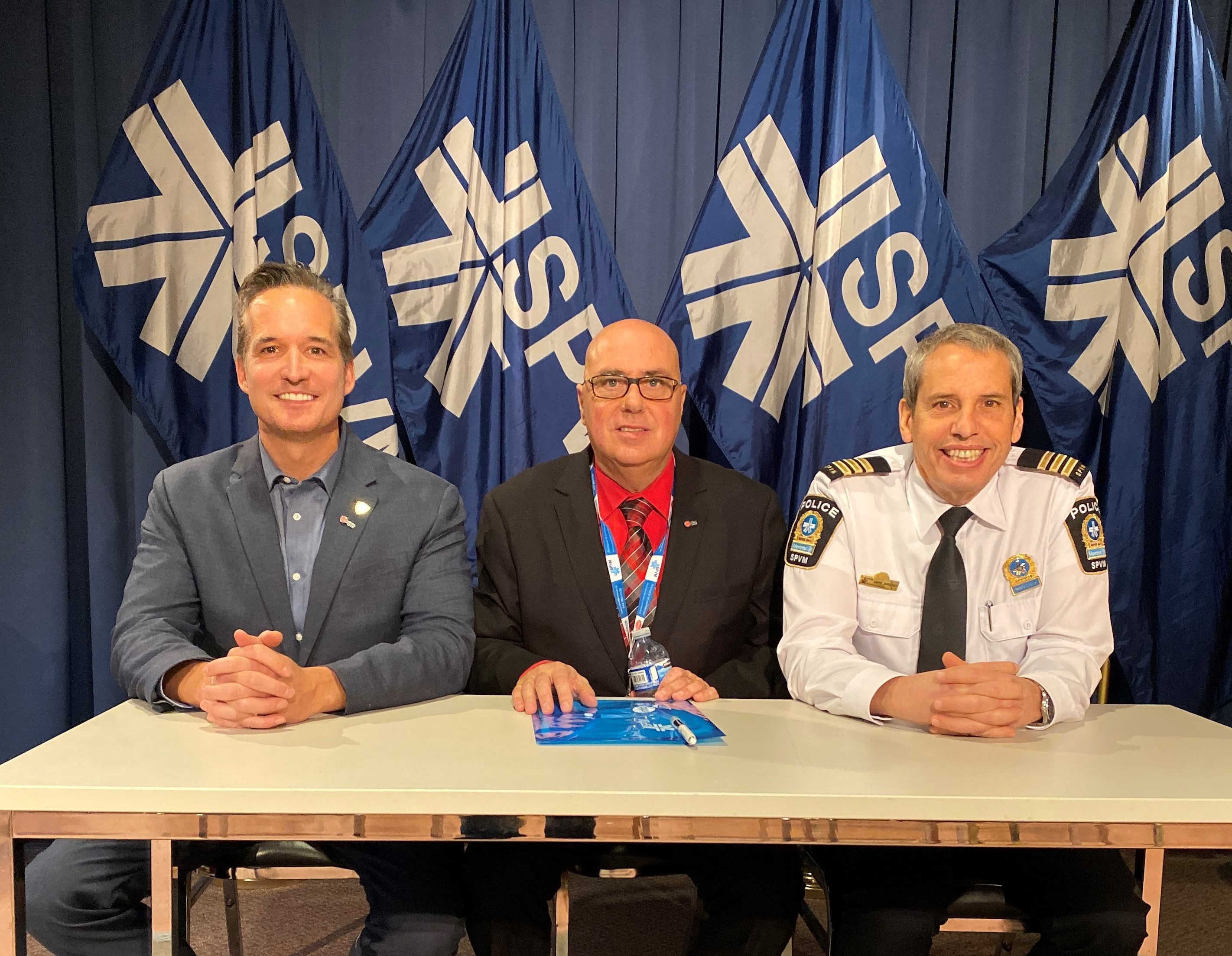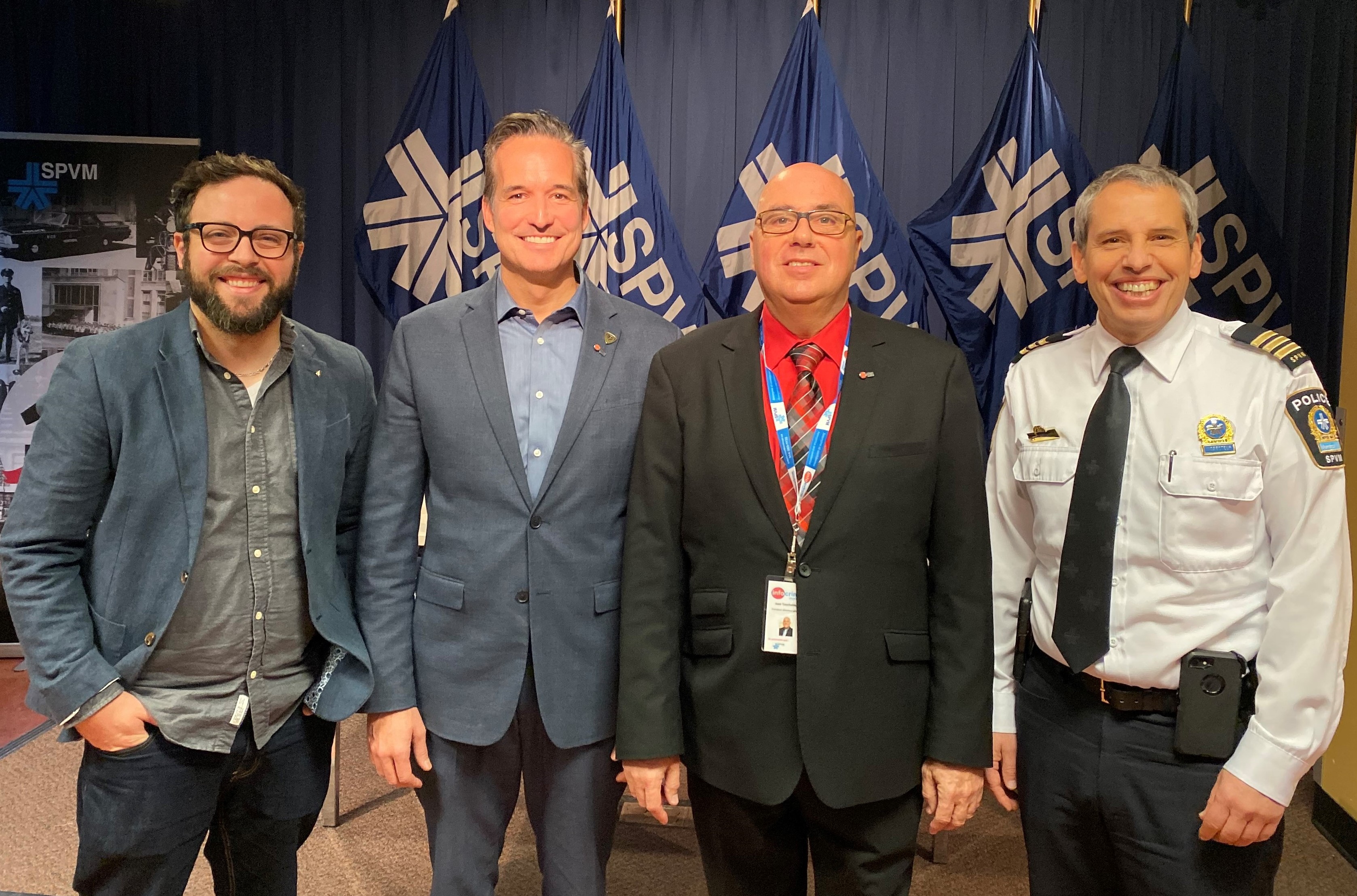 The press conference was held on December 11 in the press room of the SPVM headquarters in the presence of Olivier Lapointe, member of the ICM board of directors and chairman of the visibility-strategy committee, Jean Touchette CEO of ICM and André Durocher, inspector and communications manager at the SPVM.