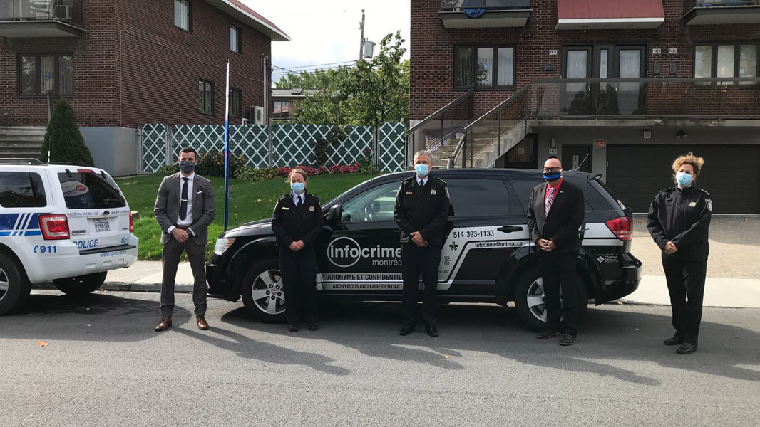 On the first photo, we see, Commander Francis Renaud, criminal investigations, the commander of PDQ 27, Anik St-Onge, the director of the SPVM, Sylvain Caron, Jean Touchette, CEO of ICM and Sophie Roy, deputy director of the SPVM.