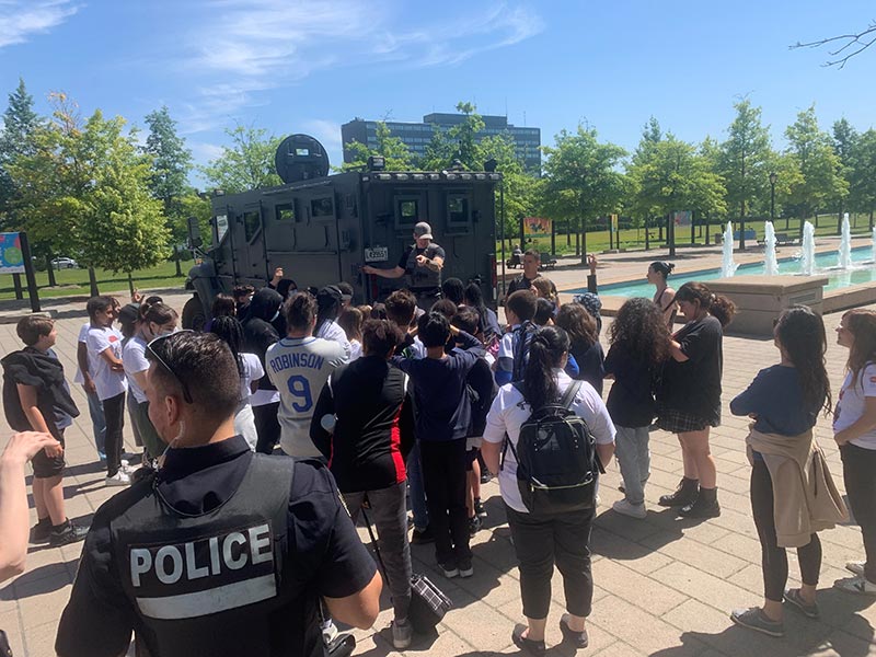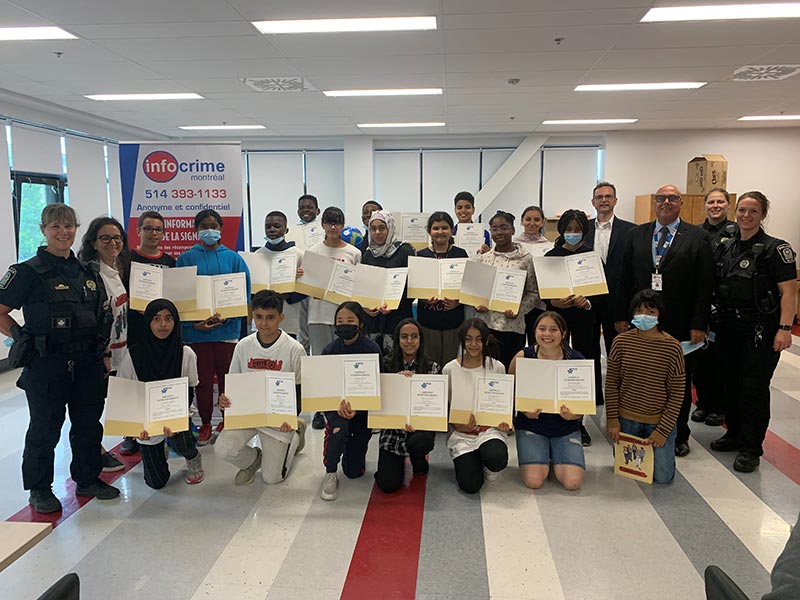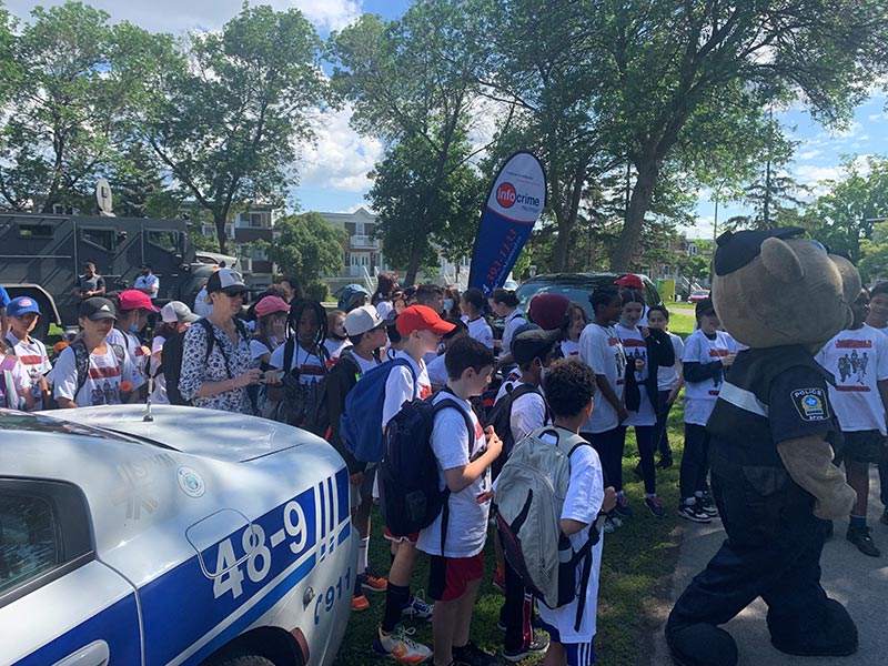 Note that the Unité sans violence Project saw the light if day around 15 years ago through the commitment of SPVM Officer Manon Vouligny, and since then, Info-Crime Montréal has financially supported the project, which is supervised by socio-community officers on the ground. It is worth mentioning that Info-Crime has so far invested more than $250,000 in the project. This year, our recognition activities took place between June 13 and 20 and in every case the initiative rewarded participants for their involvement in preventing violence and bullying at school. Some activities took place in school and others outside, with demonstrations by some SPVM intervention units, including the Tactical Intervention Group, the canine K-9 Unit, members of the Cavalry and Motorcycle Squad, all of which were of interest to young students, and even their teachers. Every end of the school year activity also offered a noontime lunch, to the great delight of the students.